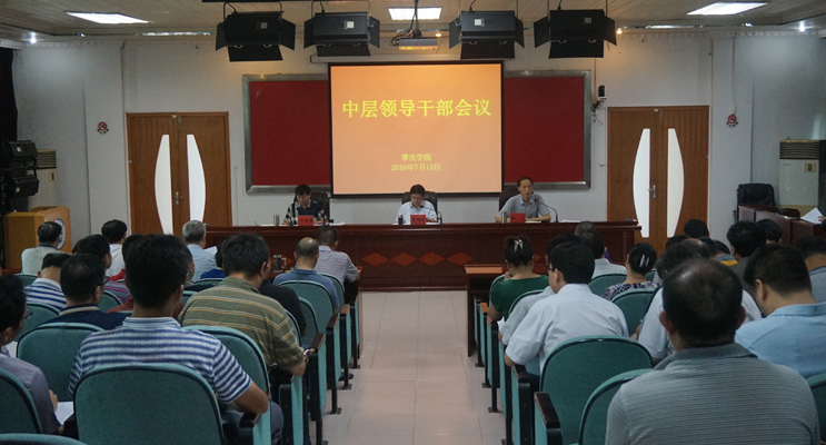 本网讯 7月13日,校党委书记曾桓松主持召开本学期最后一次中层干部会议,围绕2016年学校的重点工作作总结和谋划。校领导和飞、叶峥嵘、黄劲松、周苏平、王忠、林俊睦,全体中层领导干部出席会议。