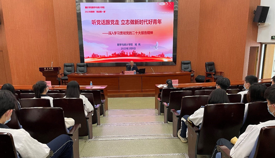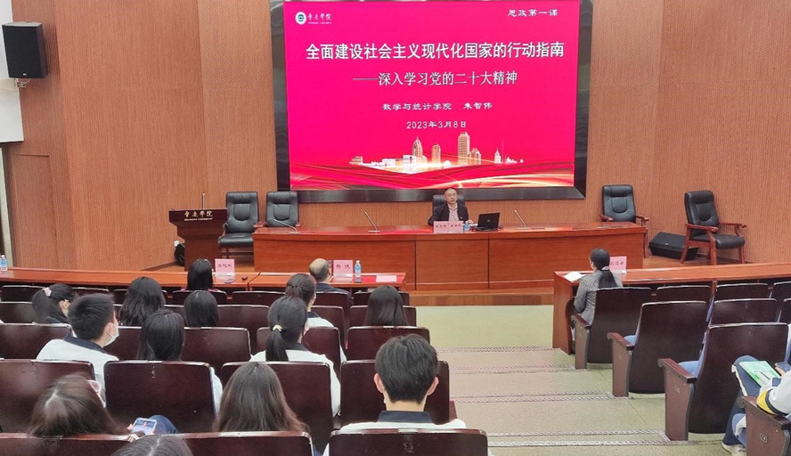 本网讯 为深入学习党的二十大精神,培养理想信念坚定的新时代青年,3月8日,数学院党委举行分党校春季开班仪式。学院党委书记杨帆、院长朱智伟分别以《听党话跟党走,立志做新时代好青年》和《全面建设社会主义现代化国家的行动指南——深入学习党的二十大精神》为题,带领数学院分党校2023年春季培训班学员开启入党征程中的“思政第一课”,300多名学员参加。
