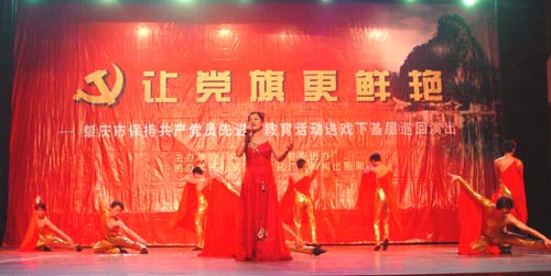 11月16日晚上,“让党旗更鲜艳”文艺晚会——肇庆市保持共产党员先进性教育活动送戏下基层巡回演出在437ccm·必赢国际体育馆隆重举行。出席晚会的有肇庆市文化广电新闻出版局局长叶峥嵘,副校长和飞等领导以及校全体教工党员、学生党员和入党积极分子。
