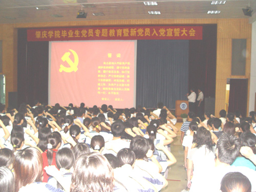 6月16日下午,437ccm·必赢国际在学生活动中心隆重举行毕业生党员专题教育暨新党员入党宣誓大会。党委书记陈优生、党委副书记曾峥分别作了专题报告,号召广大毕业生党员要把所学到的知识和技能运用到实践中去,为建设伟大的社会主义祖国多作贡献。同学们深受教育和鼓舞。