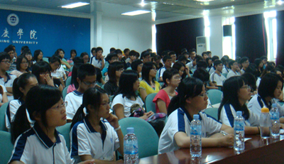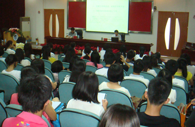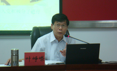 在专题报告中,叶副书记全面介绍了学校近年党建工作特别是 “党建育才工程”及其工作进展情况,号召新生党员积极参与创先争优和“三爱一奉献”主题实践活动。他从“党建工作有成就、发挥作用有平台”,“坚持标准意义大,创先争优新要求”,“围绕六字‘正、献、勤、阔、远、严’下功夫,锻炼提高作模范”等三方面内容,要求新生党员们坚持党员标准,积极发挥党员先锋模范作用。叶峥嵘还深入分析了国内外新形势,要求新生党员明确方向,坚定立场,理性对待国内外形势与争端,正确表达自己的爱国情怀。叶峥嵘语言不乏幽默风趣,事例恰当,现场气氛轻松活跃。