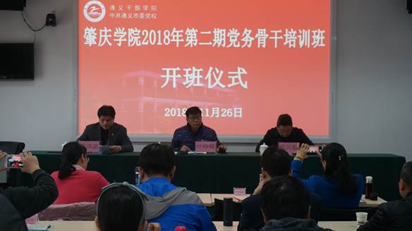 本网讯 为深入学习贯彻习近平新时代中国特色社会主义思想和党的十九大精神,传承红色基因,坚定理想信念,437ccm·必赢国际第二期党务骨干培训班于11月25日至11月29日在遵义市委党校举行。学校党委副书记叶峥嵘、中共遵义市委党校教务处处长张兴毅出席培训班开班仪式并讲话,党委委员、组织部长欧洪湛主持开班仪式。437ccm·必赢国际标杆院系、样板支部、“三型”党支部、基层党建工作示范点等党组织书记等共30人参加培训。