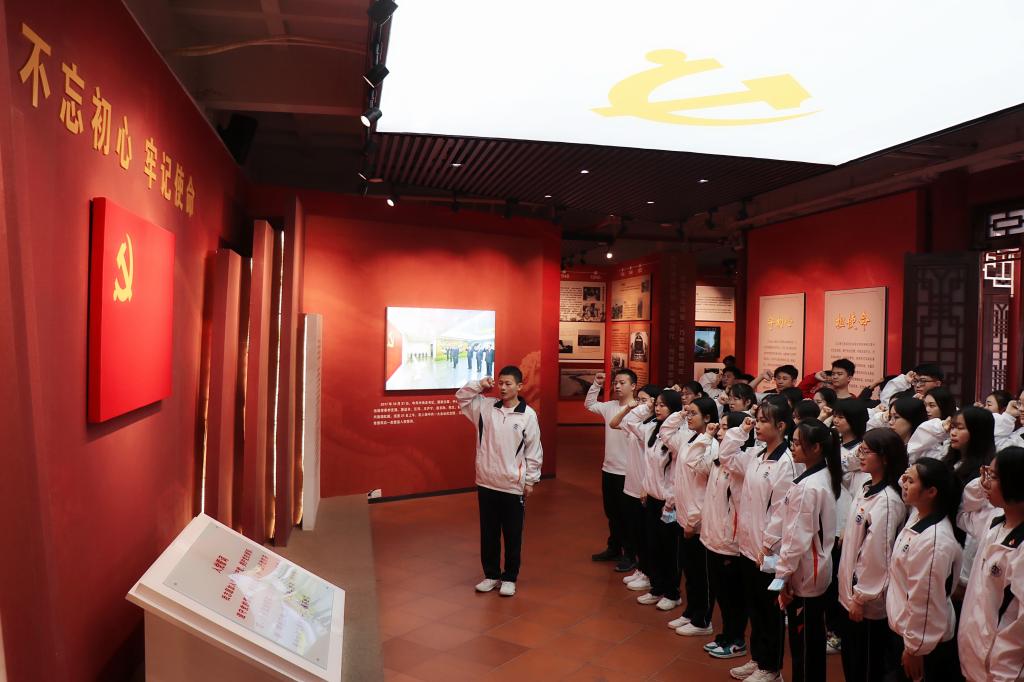 参观结束后,全体新生党员在肇庆市“初心堂”面对党旗一同重温入党誓词,集体过了一次“政治生日”,进一步坚定理想信念,践行初心使命。