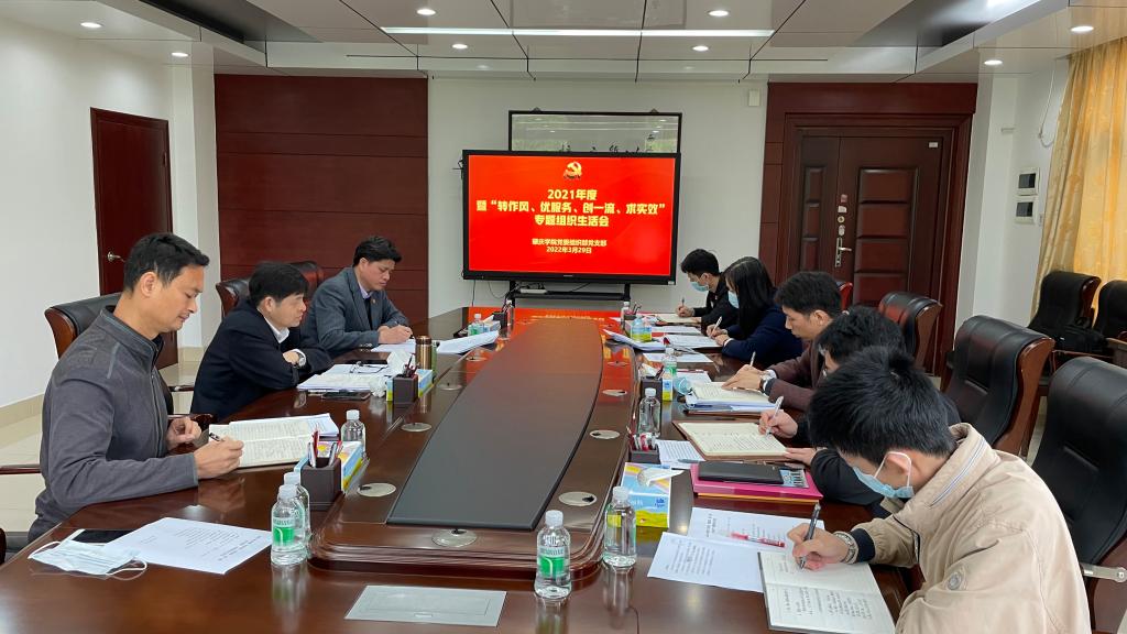 会前,组织部党支部进行了认真准备,扎实做好深入学习、谈心谈话、查摆问题、撰写发言提纲等准备工作。其中,3月18日集中深入学习贯彻习近平总书记在2022年春季学期中央党校(国家行政学院)中青年干部培训班开班式上的重要讲话精神、党的十九届六中全会精神。在此基础上,通过各种方式查摆问题,开展了谈心谈话,同志间相互交换意见。支部委员会和党员分别对照职责任务、新时代合格党员标准等,联系思想和工作实际,紧密结合“肇庆三问”,全面查摆存在的问题和不足,剖析问题根源,形成问题清单,提出整改措施。会上,党委委员、组织部部长欧洪湛带头开展批评与自我批评。全体党员联系实际,查摆在政治、思想、学习、工作、能力、纪律、作风等存在的问题,分析问题原因,明确了整改措施;党员之间坦诚相待,客观公正,深入开展批评与自我批评。副部长、支部书记王浩发代表党支部委员会报告支部工作情况,通报了支部委员会查摆问题的情况,组织开展了民主评议党员。