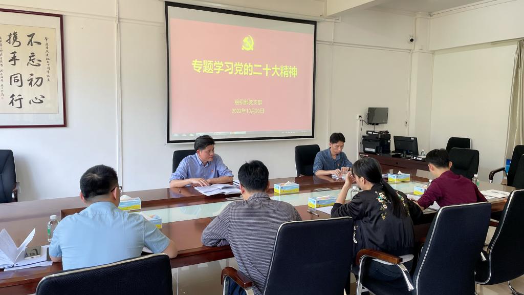 本网讯 10月20日,组织部党支部召开党员大会,组织学习领会党的二十大报告精神。党委委员、组织部部长欧洪湛作专题辅导报告。