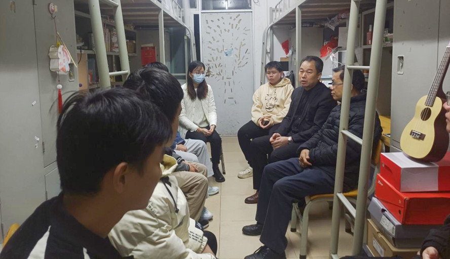 本网讯 12月1日晚,副校长肖起清走访他联系的教育科学学院学生宿舍,以“职业导向、学术导向、生活导向”为切入点与同学们进行交流。学院党委书记谢佐永陪同。
