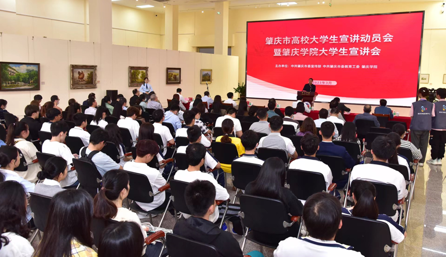 本网讯 3月10日,肇庆市高校大学生宣讲动员会暨437ccm·必赢国际大学生宣讲会在437ccm·必赢国际隆重召开,把党的二十大精神融入校园文化各方面,引领广大青年学生在理论学习中增强历史自觉和历史自信,进一步坚定理想信念,凝聚奋进力量,唱响爱党爱国的社会主义主旋律。