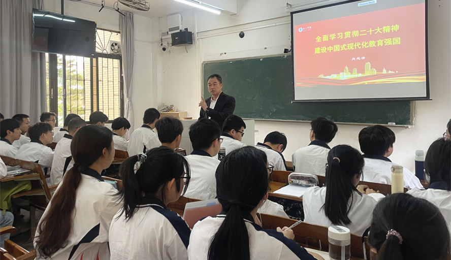肖起清从党的二十大精神基本内容、中国式现代化的理解、中国式教育现代化的内涵和中国式教育现代化的路径四个方面展开授课,阐述党的二十大召开的历史意义,围绕党的二十大精神内容中的核心概念、重要论断进行讲解,带领同学们学习党的二十大精神,感悟其思想伟力。他运用大量鲜活的例子,通过古今中外对比,带领同学们理解中国式现代化的特征、本质要求,中国式教育现代化的内涵与路径。还结合授课对象小学教育专业定向学生,强调小学阶段是培养学生基本素养乃至国民素养的重要阶段,同学们作为公费师范定向生享受国家给予的好政策,生逢其时,使命在肩,要充分发挥自身专业的优势,为乡村教育的高质量发展贡献自己的力量。