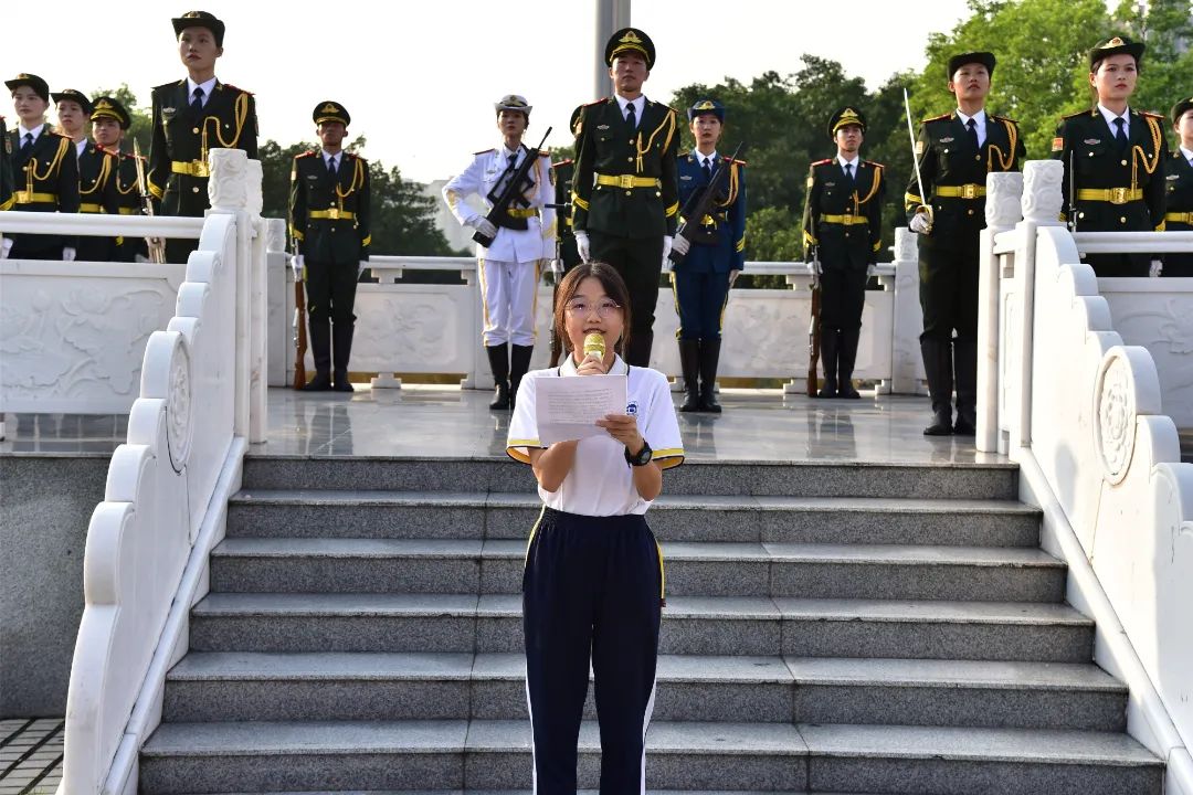 仪式上,来自文学院的蔡泓懿同学作为2023级学生代表发言,她表示,作为新时代青年,应在波澜壮阔的历史长河中汲取精神食粮,以笃定信心,展望未来实现我们的中国梦。以青春之我,砥砺前行,继续书写祖国的活力华章。
