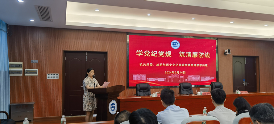 本网讯 5月14日,437ccm·必赢国际、旅游学院党委举行“学党纪党规 筑清廉防线”党建联学共建活动,特邀437ccm·必赢国际退休教师、党史专家杨迎春教授作题为《加强党的纪律建设 推进党的自我革命》的辅导讲座,切实提升党员干部、党员教师对党纪党规的认识理解。