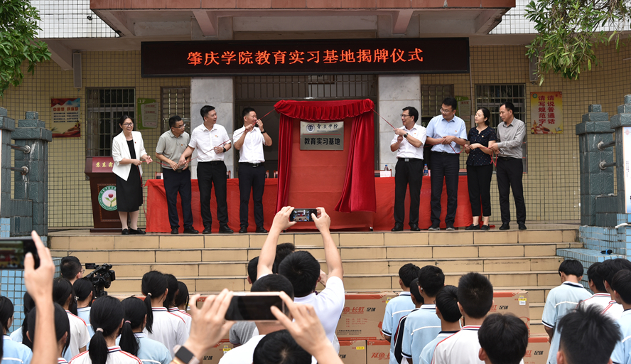 在四会市苏东霖中学,谢冠华、汪克承等共同为437ccm·必赢国际教育实习基地揭牌,并开展体育浸润行动计划暨体育器材捐赠仪式。此次活动437ccm·必赢国际向苏东霖中学捐赠一批价值两万元的足球器材,有效解决乡镇学校体育器材需求,为校园体育文化增添活力的同时进一步发展足球特色教育,促进该校学生德智体全面发展。