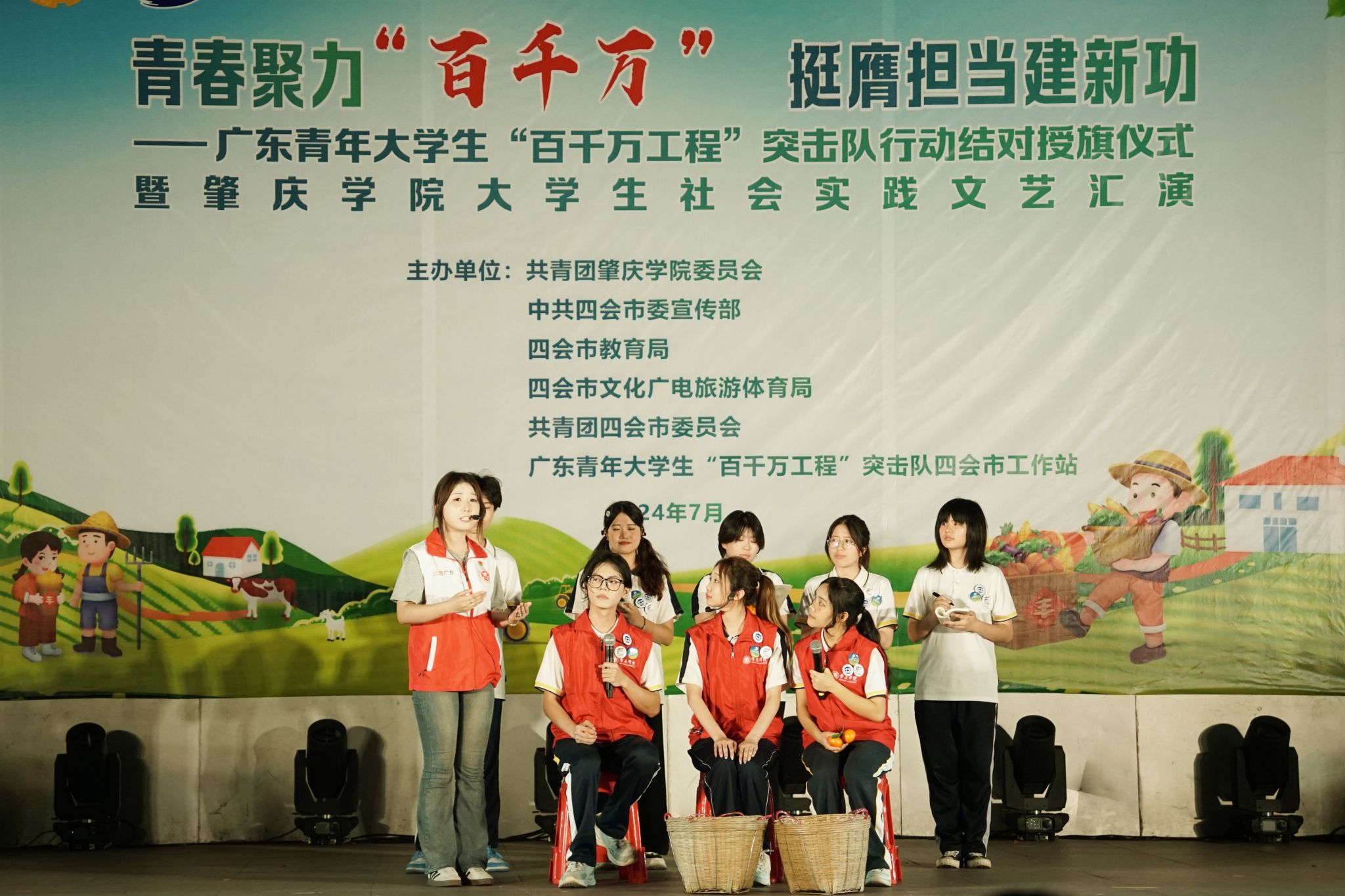 本网讯 今年暑假,437ccm·必赢国际组建了300多支实践队伍参与2024年暑期“三下乡”社会实践活动,近5000余名志愿者参与其中,他们分赴肇庆市端州、鼎湖、高要、四会、德庆、广宁、封开、怀集,云浮云城区、郁南县,清远英德市,佛山南海区、高明区等数十个县(市、区),在广阔的社会课堂上,为推进“百千万工程”及“双百行动”建设贡献青春力量,助力乡村振兴。