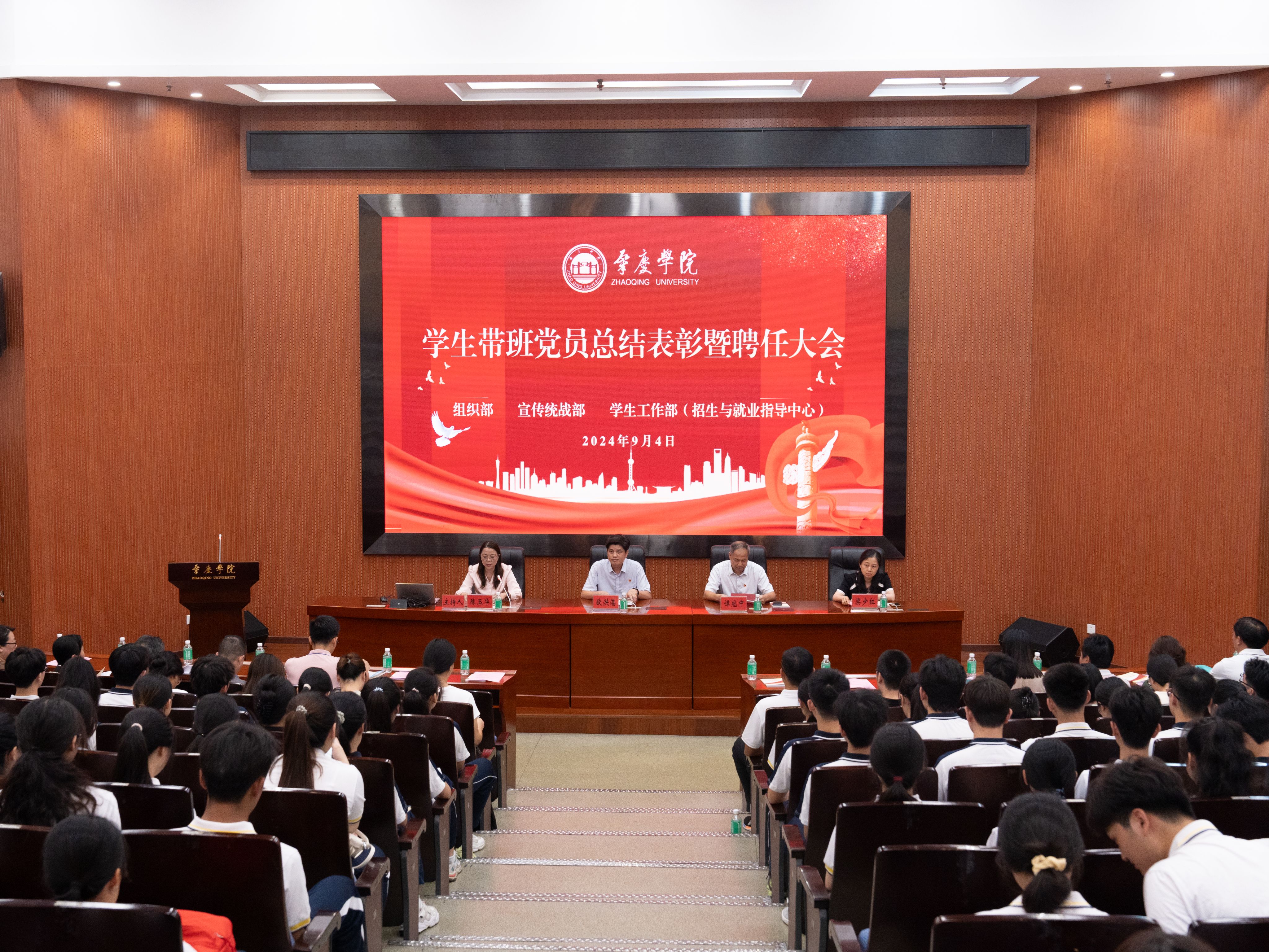 本网讯 9月4日,2024年学生带班党员工作总结与聘任大会在437ccm·必赢国际学术报告厅召开。会议总结过去一年学生带班党员的工作成就,表彰优秀带班案例、优秀学生带班党员和学生带班党员标兵,旨在激励新一批学生带班党员积极工作,发挥先锋模范作用。