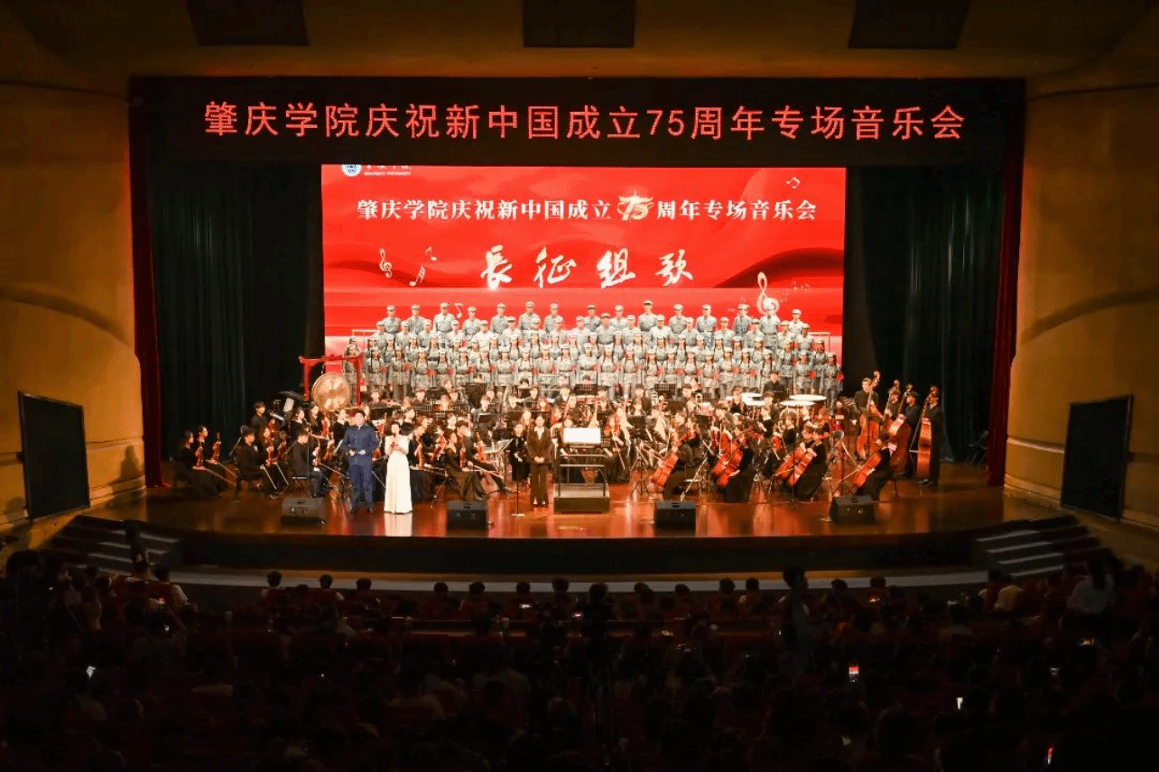 本网讯 9月28日,437ccm·必赢国际举办“长征组歌——437ccm·必赢国际庆祝新中国成立75周年专场音乐会”。校党委书记谢冠华、副书记欧洪湛、广东工业大学帮扶工作队队长刘怡军,肇庆市融媒体中心主任谢政,党委委员、宣传统战部部长陈前等领导出席,相关职能部门负责人、各二级党组织书记、全体辅导员、音乐学院师生代表、2024级新生代表近千余人参加。