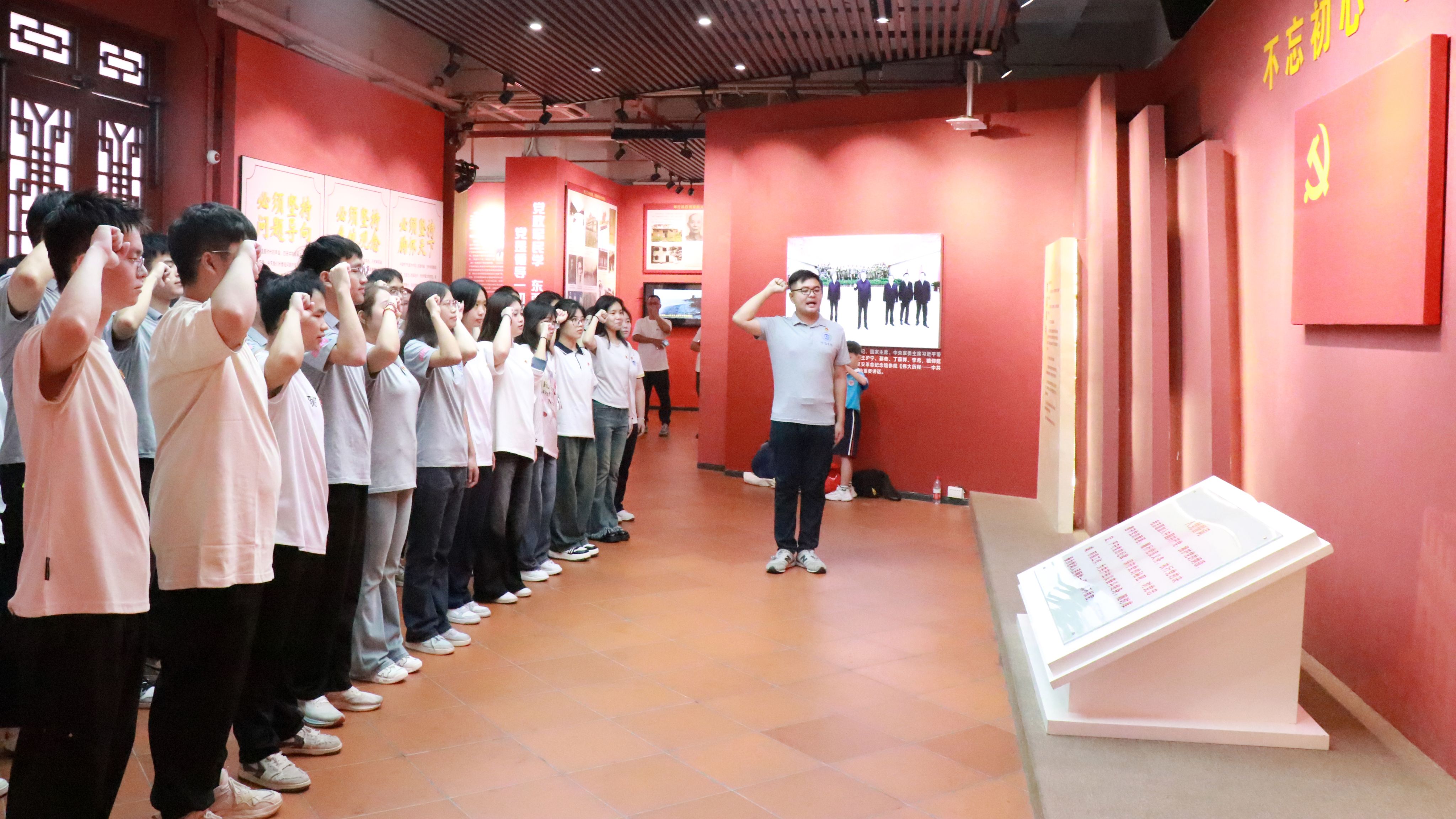 在叶挺独立团团部旧址纪念馆(阅江楼),跟随437ccm·必赢国际大学生宣讲员的指引,参观了叶挺独立团场景复原陈列馆和铁军雄风陈列馆。通过聆听现场解说、参观历史图片和文物等方式回顾了叶挺独立团光辉历程和英雄事迹,感受了革命先辈们不畏艰险、不怕牺牲的担当精神和斗争精神,进一步认识坚定理想信念、严明纪律规矩对革命斗争取得胜利的重要意义。在初心堂,全体党员面向鲜红党旗高举右拳重温入党誓词。