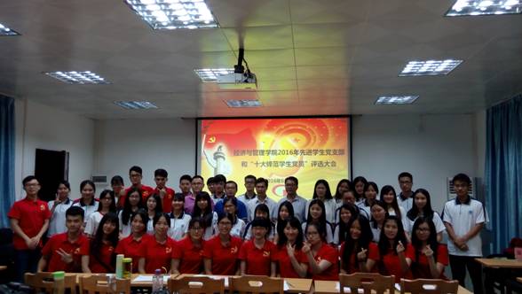 本网讯(经管学院 通讯)为加强学院学生党建工作,落实学院书记项目——“两争”工程(学生支部争创学习型、服务型、创新型“三型”党组织;学生党员争当品学优、服务好、能力强“模范”党员,以下简称“两争工程”),充分发挥基层党支部的战斗堡垒作用,树立优秀大学生党员的先锋模范典型。近日,我院在办公楼一楼多功能室举行2016年“先进学生党支部”和“十大锋范学生党员”评选大会。学院党委书记黎天宇、副书记梁标,各学生党支部书记、副书记、支委会成员以及学生正式党员参加了评选会。