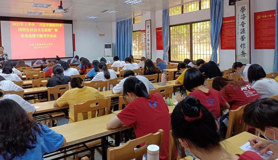 本网讯 按照学校党员发展工作部署,结合本院2021年党建工作安排,经济与管理学院分党校于近日举办“习近平新时代中国特色社会主义思想”和“党章党规”专题考学活动,学院上半年党员发展对象50人参加考学。