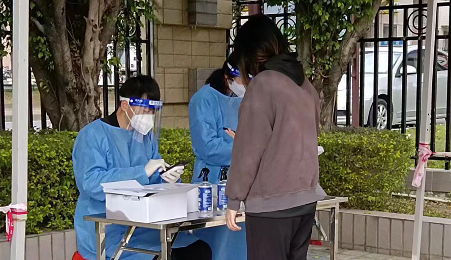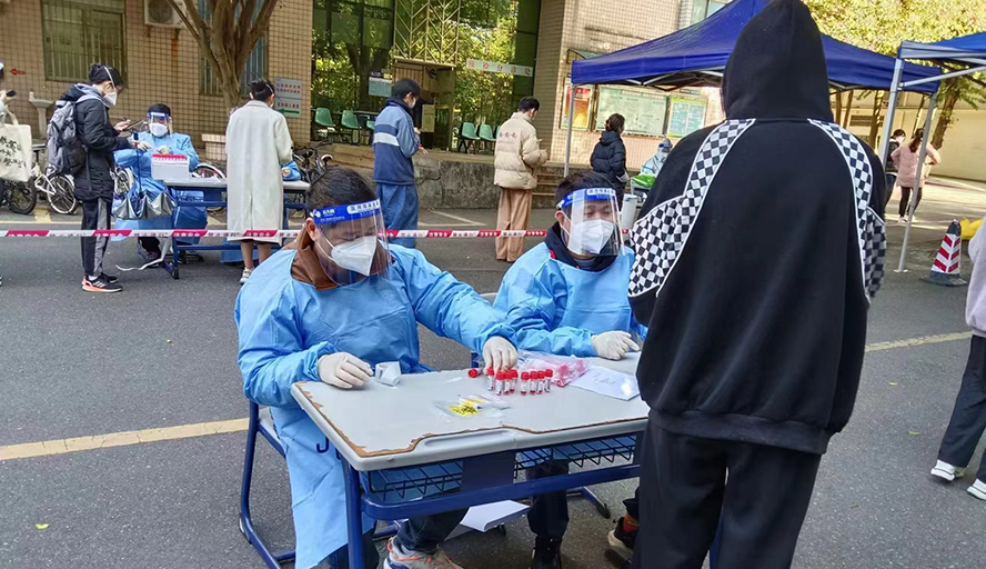 图片说明:12月20日,机关党员志愿者积极参与考研学生核酸检测工作。据了解,本月24日至25日,2023年研究生招生考试将在437ccm·必赢国际如期举行。为保证考生和考试工作人员健康安全,学校根据疫情防控要求,组织开展了本次核酸检测活动。