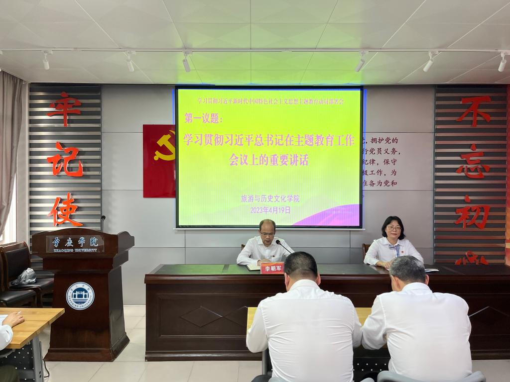 本网讯 4月19日,旅游与历史文化学院召开学习贯彻习近平新时代中国特色社会主义思想主题教育动员会,认真学习学校学习贯彻习近平新时代中国特色社会主义思想主题教育动员部署会精神,对全院主题教育工作进行安排部署,动员全院师生党员以良好的精神面貌投入到主题教育中来,确保主题教育有序开展、取得实效。李朝军院长、杨雪梅书记、周军副院长以及党支部书记、全体党员参加动员会,专职组织员陈建群主持。