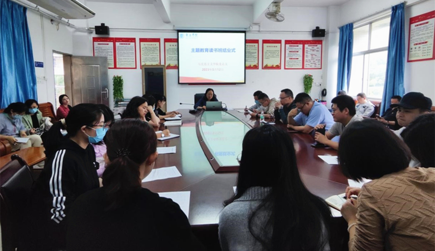 本网讯 5月12日,马克思主义学院举行学习贯彻习近平新时代中国特色社会主义思想主题教育读书班结业式,学院党总支书记、院长曹顺霞主持,学院全体教师出席。