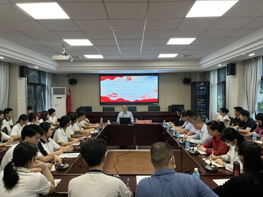截至6月5日,共组织中心组学习8次、第一议题38次,教职工开展政治理论学习5次,开展各类党建活动24次,举办工会、团委活动28次。其中,胡文涛副校长给师生代表讲授专题党课《以习近平外交思想为指引全面推进中国特色大国外交—深入学习贯彻党的二十大精神》;校宣讲团成员、马克思主义学院副院长曹和修教授围绕学习《习近平著作选读》第一卷、第二卷进行专题辅导。此外,学院党委组织师生代表分别到鼎湖区沙浦镇革命烈士陵园、东江革命烈士纪念公园等党性教育基地等开展现场教学,以红色文化教育凝心铸魂、锤炼党性。