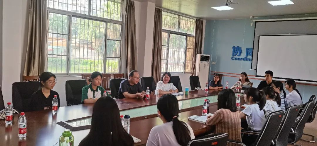 图:肖光明教授、杨雪梅书记与22级学生召开座谈会