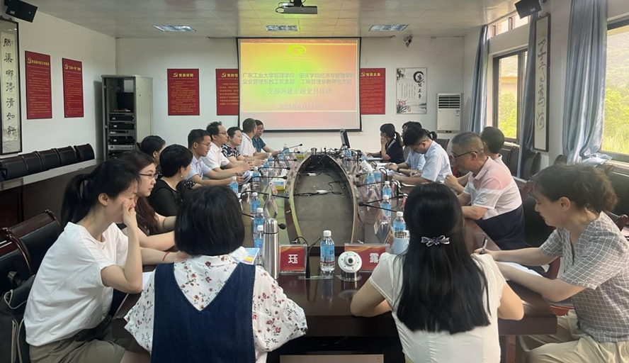 本网讯 为充分发挥党建引领作用,提升党建工作水平,促进以支部为载体的党建和业务工作深度融合、双向提升。6月17日,经济与管理学院工商管理系与广东工业大学管理学院企业管理系开展支部共建活动。广东工业大学企业管理系教工党支部11名党员在支部书记陈修德的带领下来学院开展交流,广东工业大学挂职经济与管理学院副院长王永健、经济与管理学院党委委员邓孙棠以及经济与管理学院其他教师党支部代表一起参加活动,会议由工商管理系教师党支部书记周长锋主持。