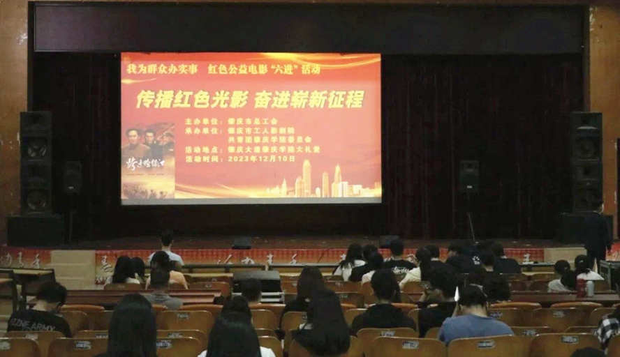 本网讯 为进一步加强爱国主义教育,引导青年学子厚植爱国情怀,凝聚奋进力量,12月10日,校团委在学生发展中心大礼堂举行2023年“书香砚园”读书活动红色主题观影活动,组织团员及入团积极分子约300余人观看电影《跨过鸭绿江》。