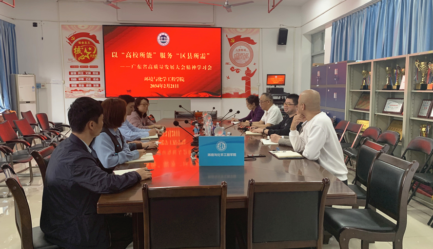 本网讯 2月21日,环境与化学工程学院党委组织召开新学期第一次党委中心组政治理论学习会,集中学习2024年广东省高质量发展大会精神。学院党委书记刘远君、院长李湘参加。