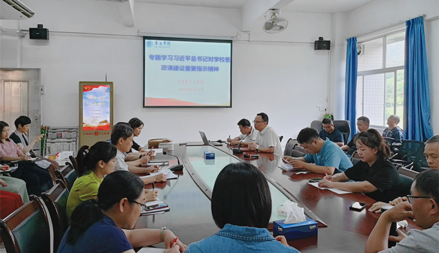 本网讯 5月14日,马克思主义学院组织全体教师专题学习习近平总书记对学校思政课建设作出的重要指示精神。副院长谢石生主持。