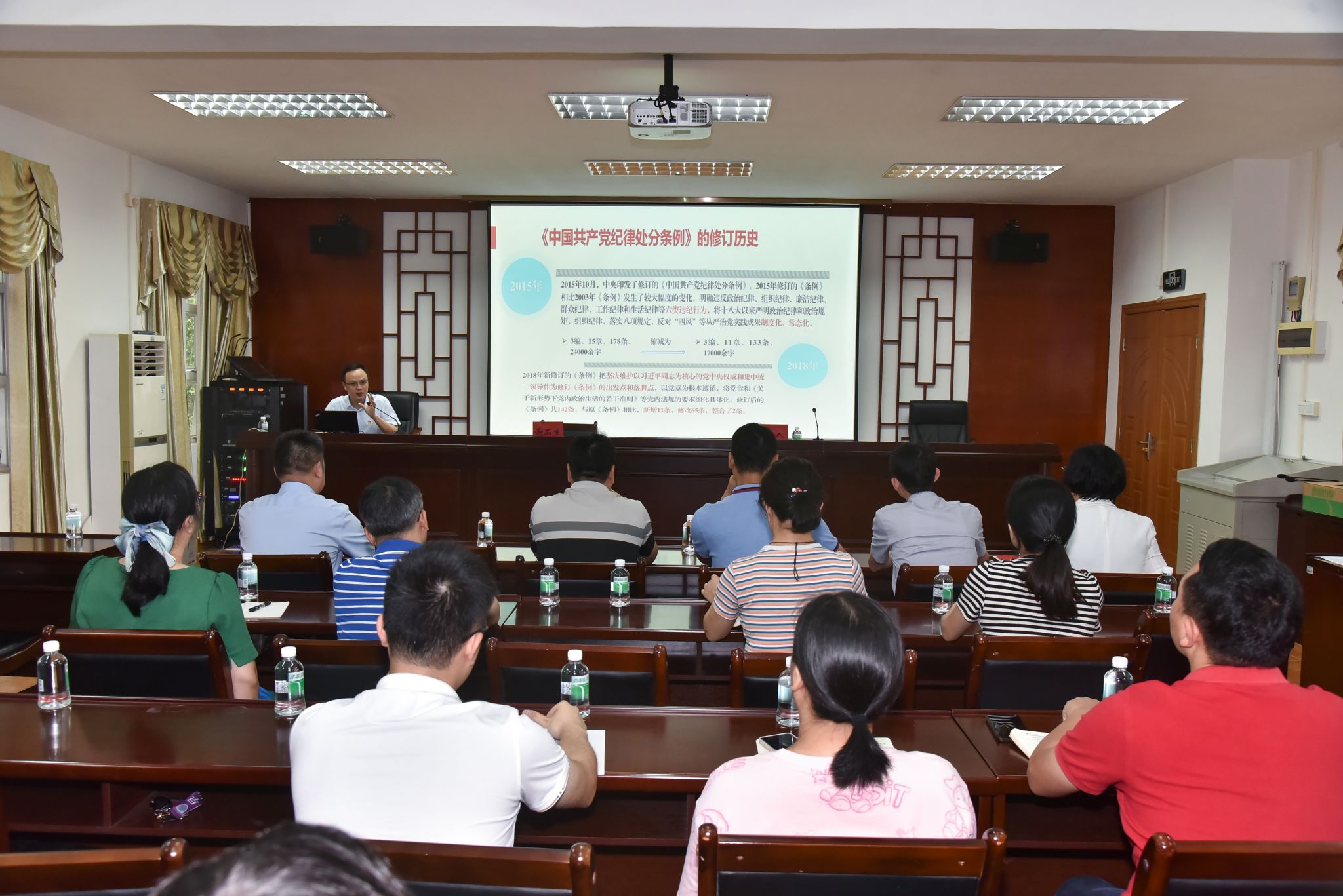 本网讯 6月27日,437ccm·必赢国际邀请马克思主义学院副院长谢石生作党纪学习教育专题宣讲。437ccm·必赢国际书记李琪主持,学校党纪学习教育工作专班成员李永佳,437ccm·必赢国际党纪学习教育工作专班成员、党支部委员、党员代表共计50余人参加。