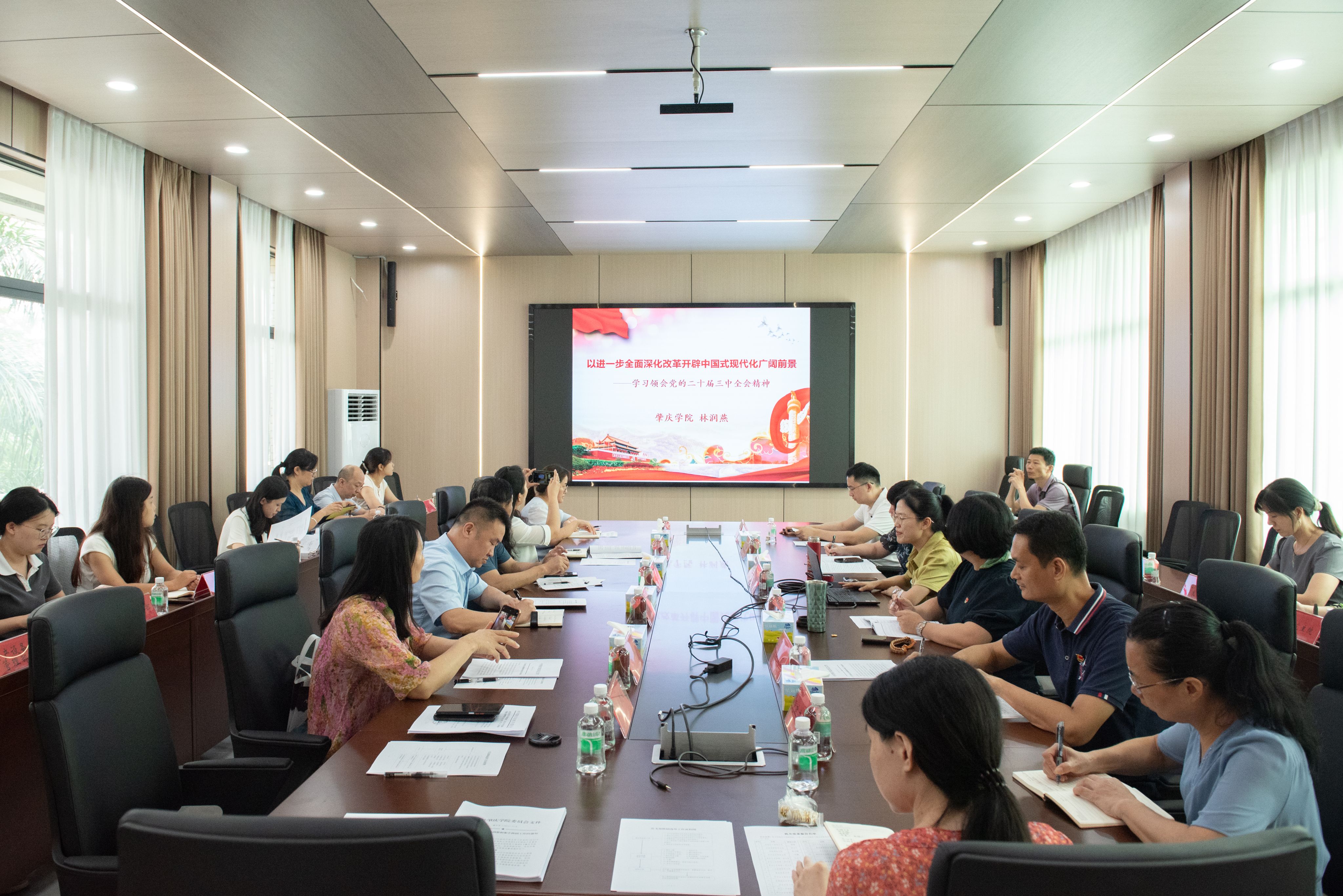 本网讯 9月13日上午,437ccm·必赢国际举行学习贯彻党的二十届三中全会精神专题宣讲暨理论学习中心组(扩大)会议。马克思主义学院副院长林润燕作专题宣讲,437ccm·必赢国际书记李琪主持会议并领学,437ccm·必赢国际委员周建文、李妍出席会议,机关共27个党支部的委员及党员代表参加会议。