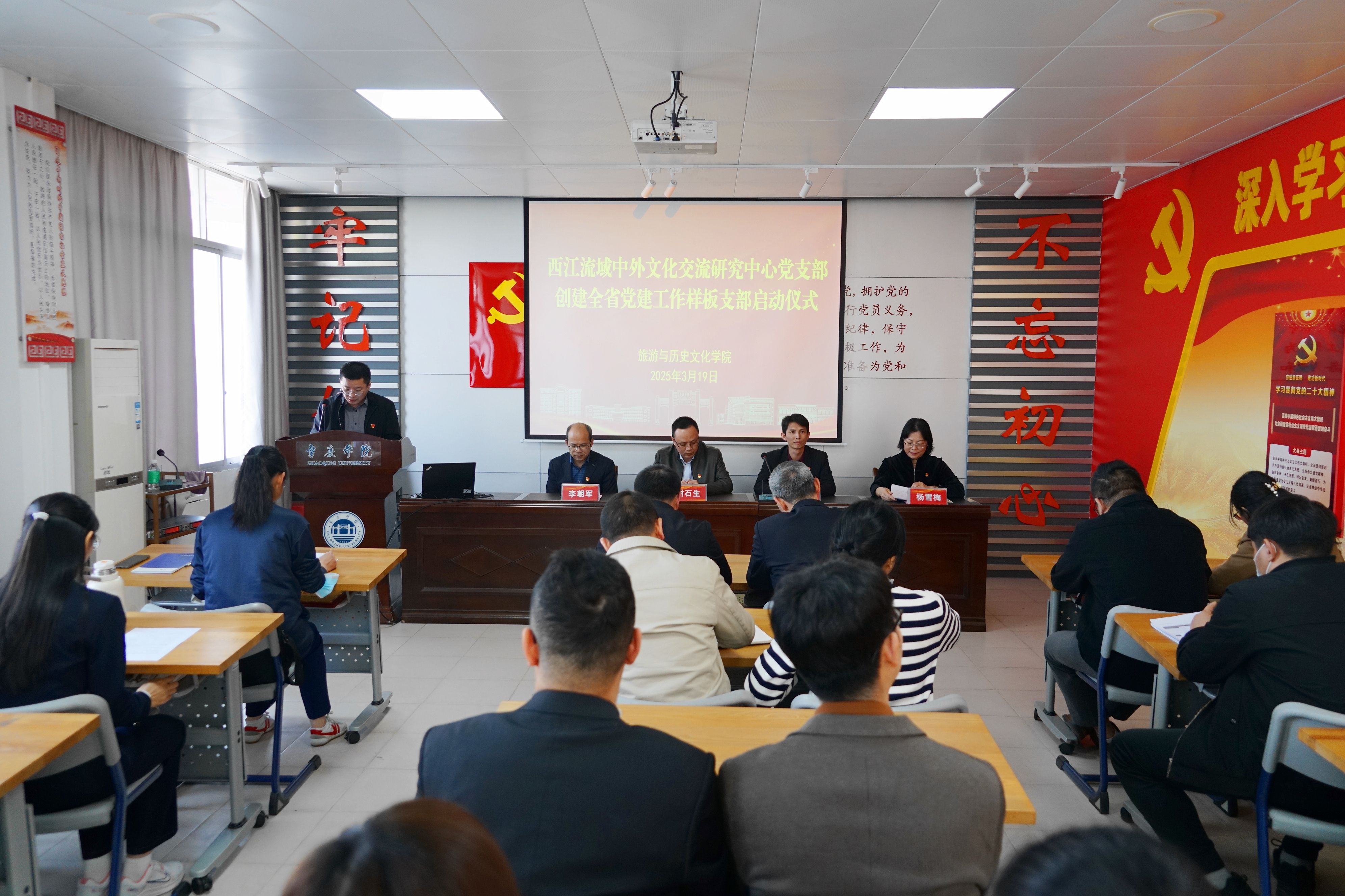 本网讯 3月19日,旅游学院西江流域中外文化交流研究中心党支部举行创建全省党建工作样板支部启动仪式。组织部副部长谭裕开、马克思主义学院副院长谢石生,旅游学院党委书记杨雪梅、院长李朝军以及组织部有关科室负责人、旅游学院师生党员代表60多人参加。